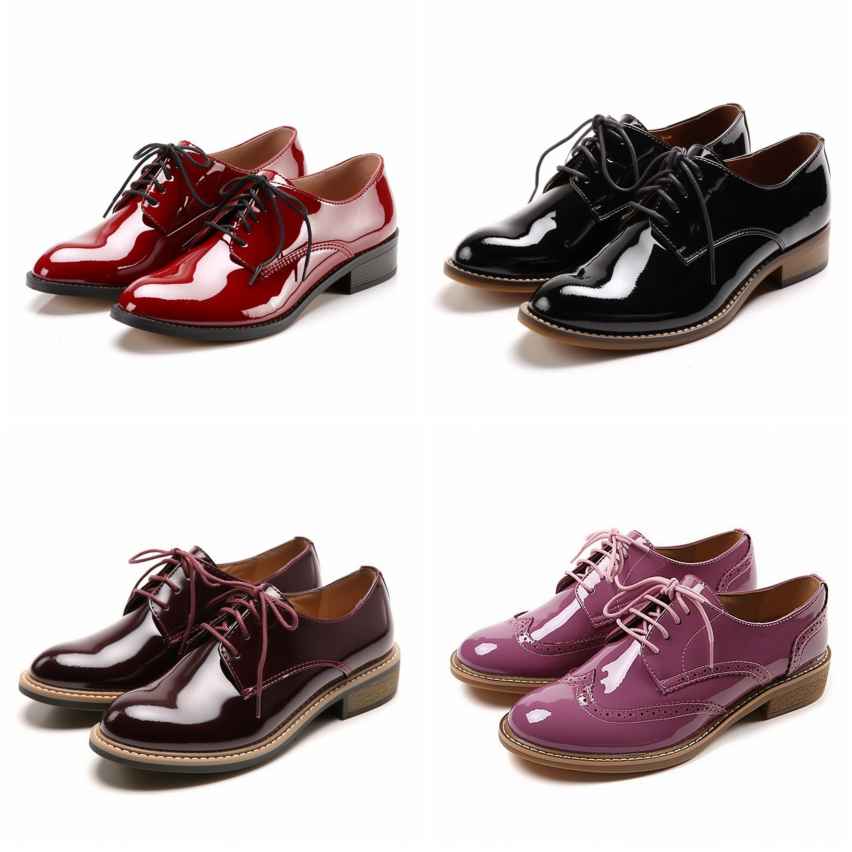 - С классическим английским стилем ассоциируются туфли-оксфорды на шнуровке. Изделия могут изготавливаться из обычной матовой или лакированной кожи. В последнем случае обувь сделает образ более ярким и привнесет в него освежающие нотки.