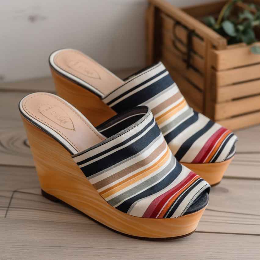 - Мюли – модные туфли без задника, верхняя часть которых зачастую создается в виде широких полосок. Органично смотрится дополнение обуви танкеткой или высоким каблуком.
