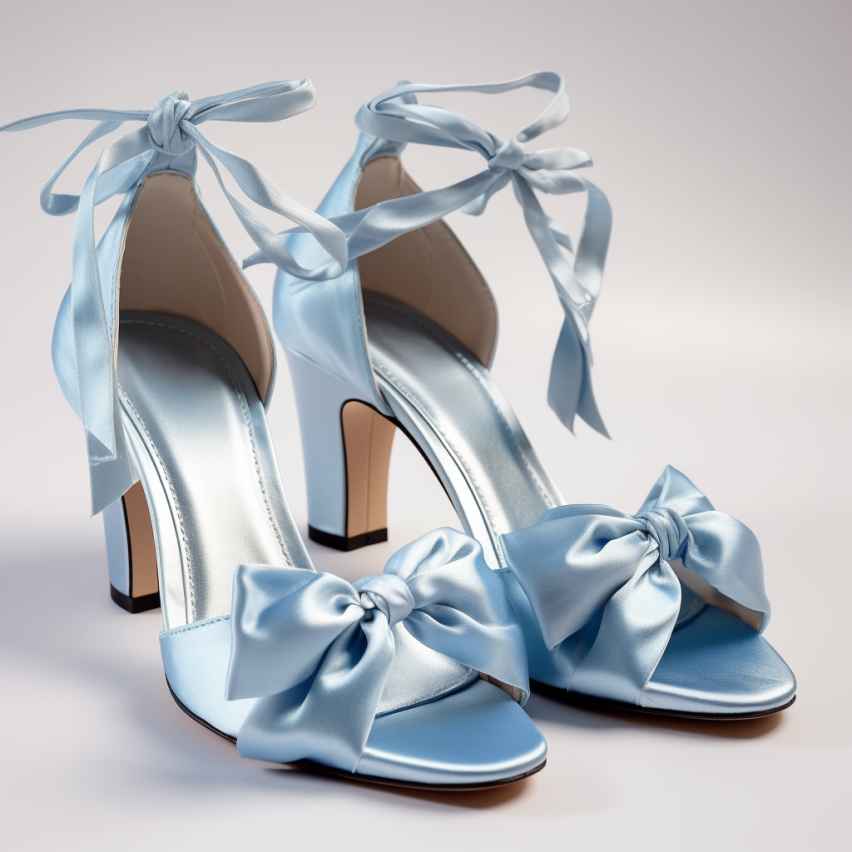 - Роскошно смотрятся изделия, выполненные из атласных материалов. Блестящая ткань применяется для оформления верха изделий, создания ремешков в виде узких или широких лент, охватывающих щиколотку.