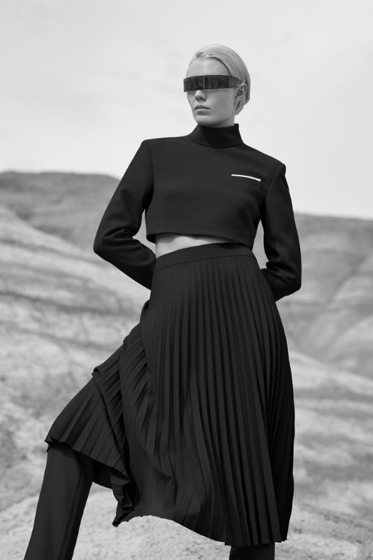 Дизайнеры бренда RAZNITSA в своей новой коллекции вдохновлялись четкостью архитектурных форм. Чистые, деконструированные силуэты стали основой осенне-зимней коллекции. Строгость линий смягчают деликатные детали, например открытая спина жакета.