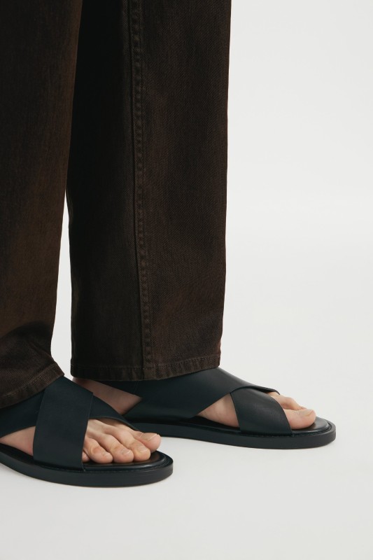 В этом сезоне сандалии – не просто допустимая обувь, а полноценный элемент образа. В тренде лаконичные кожаные пары с широкими ремнями, прочной подошвой и минимальным декором. Хорошо, если они закрывают большую часть стопы – это выглядит современно и аккуратно. Альтернатива – спортивные модели с плотной фиксацией. Важно: сандалии должны быть в хорошем состоянии и сочетаться с вещами в базовых тонах.
