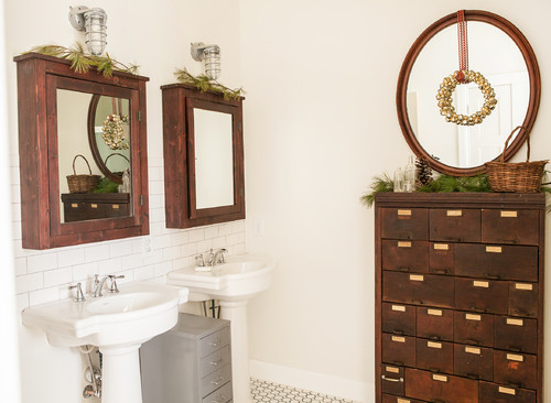 «Маленькие детали, вроде висящего на зеркале украшения или ветки, отрезанной от вашей елки и стоящей в стакане на раковине в ванной, способны создать теплую и уютную атмосферу праздника без особых усилий с вашей стороны», — считает постоянный автор Houzz Лора Гэскилл.