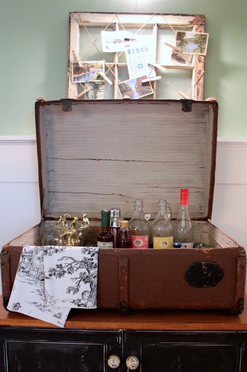 9. Организуйте домашний мини-бар. В праздничные дни не возбраняется расслабиться и устроить веселую вечеринку с коктейлями и шампанским. Но хорошей выпивке нужны достойная обстановка и красивые аксессуары. Организуйте дома мини-бар: для этого можно приобрести передвижной столик, который, кстати, пригодится вам и в повседневной жизни, приспособить под бутылки, рюмки и бокалы деревянную полку или просто расставить их в старом чемодане, декорированном еловыми ветками и игрушками. Еще больше идей для мини-бара можно найти на портале houzz.ru.