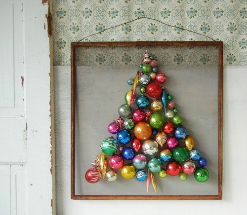 11. Найдите применение старым елочным игрушкам. «В течение нескольких лет вы наверняка собрали чрезмерно большую коллекцию елочных игрушек, ведь, в конце концов, большинство из нас побывало на нескольких очень дешевых новогодних распродажах. Вместо того, чтобы хранить эти игрушки в коробке до скончания веков, используйте их для создания своего шедевра», — советует одна из авторов Houzz Эмбер Хопман. Из старых елочных украшений можно изготовить интересную композицию или даже целый рождественский венок.