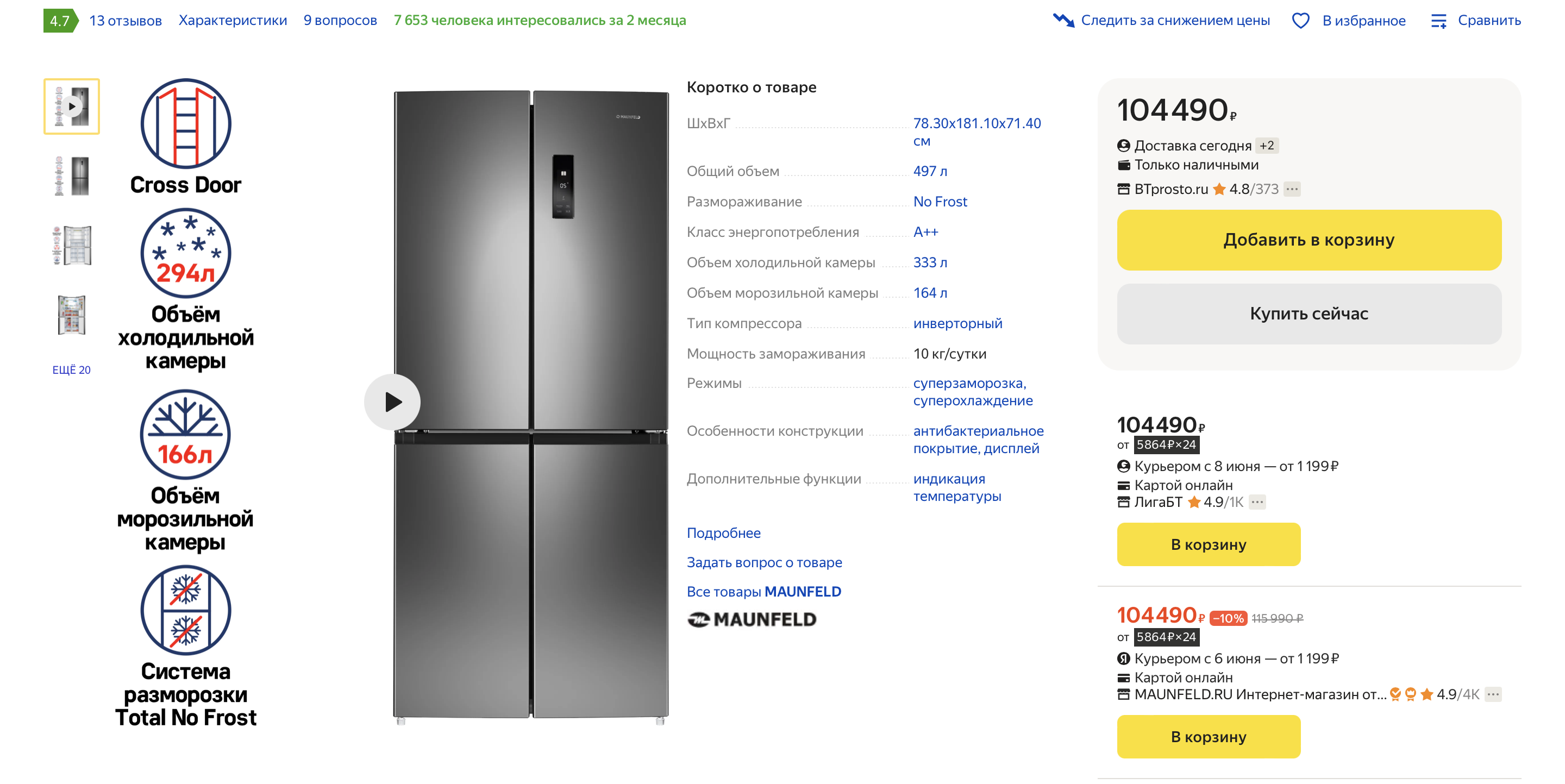 Холодильник MAUNFELD MFF181NFSB - это качественное и надежное устройство, которое создано для сохранения свежести продуктов и напитков. Он имеет вместительный объем 333 литра, что позволяет хранить большое количество продуктов, а также удобное расположение полок и ящиков, которые обеспечивают комфортное размещение товаров.