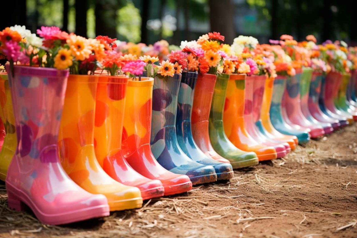 - старые вещи, в которые можно вдохнуть новую жизнь – туфли, резиновые сапоги, заварочные чайники. Из них получатся миниатюрные, но невероятно красивые клумбы;