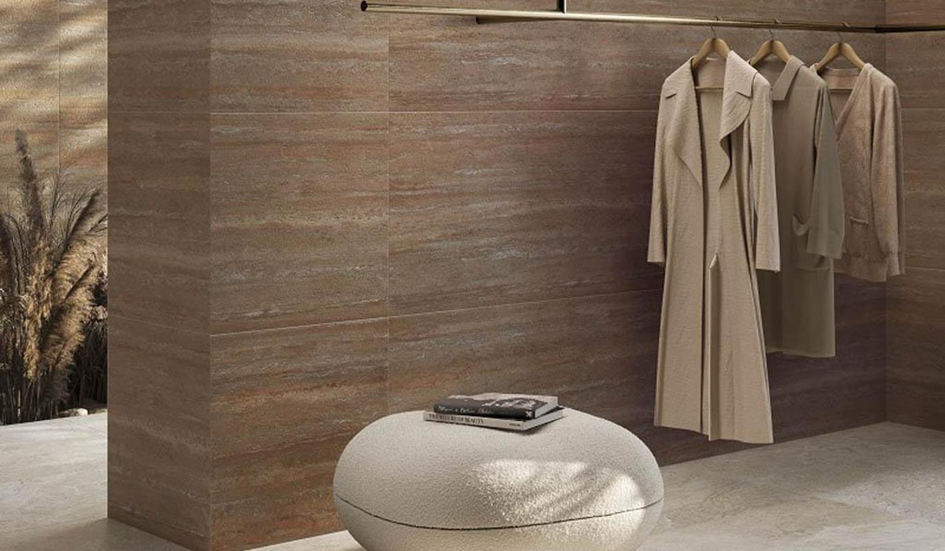 Вторая коллекция, Stonesystem, вдохновлена строгой текстурой разных пород камней и также предлагает комплексный подход в оформлении внутренних пространств. Десять артикулов формата 60х120 см качественно воспроизводят натуральный материал, включая копии «под травертин» (ДекоТравертин) и Чеппо Ди Гре, вызывающую ассоциации с терраццо. Матовая поверхность облицовки не только усиливает идентичность с оригиналами, но также обеспечивает более простой уход. Stonesystem в отличие от многих аналогичных предложений делает акцент на аутентичность текстуры камня, адаптируя ее к современным запросам домовладельцев.