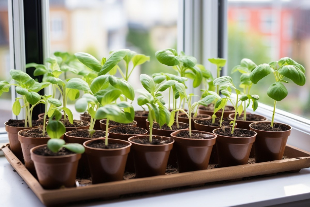Семена высаживают на глубину 5 мм, желательно в индивидуальные емкости. Горшки накрывают пленкой и ставят в теплое место до появления всходов. После того как взошли первые ростки, емкости ставят на светлый, но теплый подоконник. Рассаду поливают примерно 1 раз в неделю.