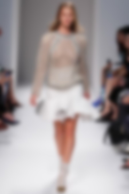 Как выяснилось, в Париж знаменитости приехали не только на других посмотреть, но и себя показать. Сегодня Роузи дефилировала на модном шоу Balmain в платье с серебристой «кольчугой» и белой стеганной юбкой – выглядело впечатляюще.