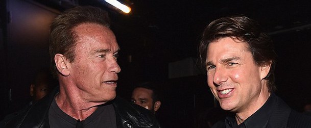 Забавный случай произошел накануне на ежегодном киноконвенте CinemaCon, который проходит сейчас в Лас-Вегасе. Звезда боевика «Миссия невыполнима» Том Круз (Tom Cruise) застал врасплох самого Арнольда Шварценеггера (Arnold Schwarzenegger).