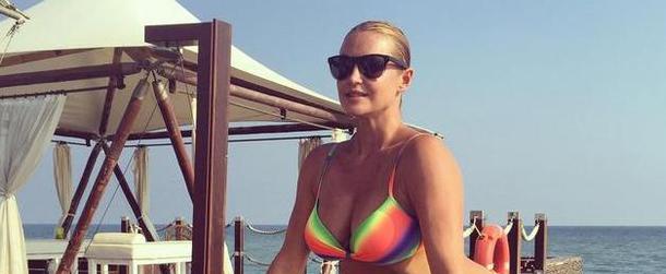 «Захотелось поделиться с вами еще одним пляжным фото. Адресовано оно завистникам и злопыхателям, которых вместо собственного отдыха заботят мои трусики, длина ножек, цвет купальников, плечи, спортивная фигура и мой втянутый животик… Дорогие мои! Мне втягивать нечего. Моя стройность - это результат ежедневного многочасового труда.. Ежедневного, подчеркиваю))) Даже на отдыхе... Поэтому имею все права объявить вам КОНКУРС: Втягивайте животы свои, кто как сможет. Если сходство вашего не уступит моему... С меня приз!»