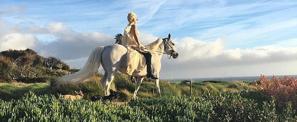 Чуть позже звезда опубликовала эффектный снимок верхом на лошади и сообщила: «Чувствую, словно мы с ней знакомы всю жизнь. Она будто хочет мне что-то показать».