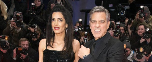 Адвокатесса Амаль Клуни (Amal Clooney) выглядела великолепно в черном вечернем платье, отделанном пайетками. И Джорджу Клуни определенно льстило внимание, которое обратили на его супругу журналисты и поклонники.