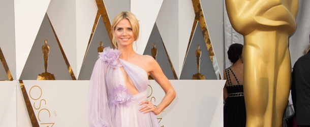 42-летняя модель появилась на красной дорожке в нежном воздушном платье оттенка лаванды из коллекции Marchesa. Ассиметричный рукав, причудливое декольте. Хайди в очередной раз доказала, что годы не властны над ее прекрасной фигурой. Но, по мнению модных обозревателей, появляться в подобных платьях на церемонии «Оскар» - признак дурного тона.