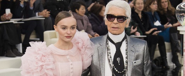 В финале показа было представлено роскошное платье нежнейшего оттенка розы с многочисленными рюшами и оборками. В платье вышла юная Лили-Роуз Депп (Lily-Rose Depp), дочь голливудского актера Джонни Деппа (Johnny Depp) и французской певицы и актрисы Ванессы Паради (Vanessa Paradis). Лили-Роуз стала лицом Chanel в прошлом году, и, похоже, Карл на девушку не нарадуется.