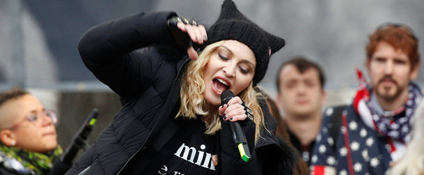 На марше протеста Мадонна исполнила несколько своих композиций, послала Трампа по всем известному адресу и сообщила, что «думала взорвать Белый дом» после победы миллиардера на выборах.