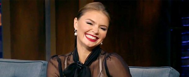 Алина Кабаева кокетничает. Звезда появилась на телешоу в необычном наряде.Алина Кабаева: «Слава богу, в моей жизни есть любовь». Знаменитость предпочитает не обсуждать личное с прессой.