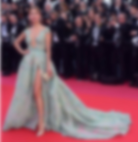 В Каннах Боня блеснула в нежно-голубом кружевном платье от Maison Esthere Maryline Couture (бренд из Туниса) с очень глубоким декольте и высоким разрезом.