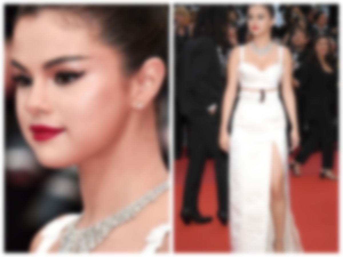 Еще одним образом, заслуживающим внимания, оказался костюм Селены Гомес. Верх его был представлен укороченным топом-бюстье на широких лямках. Дополняла его юбка с завышенной талией и высоким разрезом по ноге.