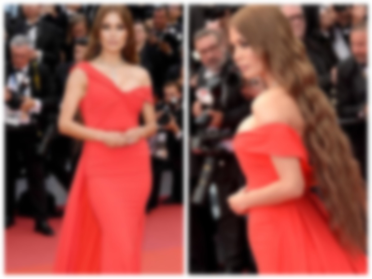 Виктория Боня из года в год добывает приглашение на Каннский фестиваль и в течение всего мероприятия щеголяет на красных дорожках, меняя наряды. На открытии она появилась в красном платье со шлейфом и асимметричным декольте.