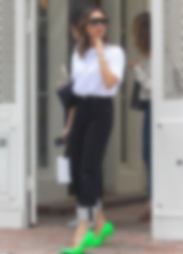 Виктория Бекхэм вызвала бурное обсуждение в сети, благодаря своему появлению на публике в повседневной одеже и ярко-зеленых туфлях на шпильке, зрительно больше на пару размеров