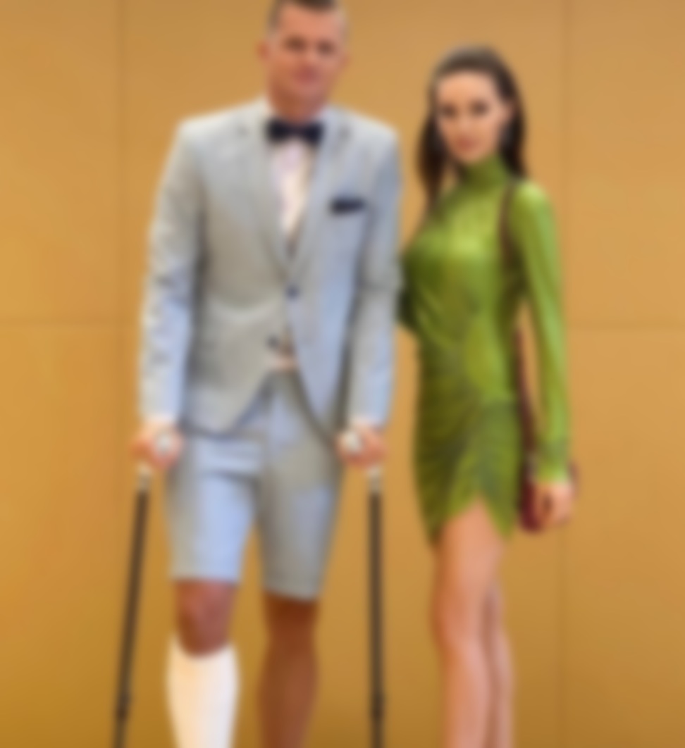 На днях пара посетила свадьбу близкого друга футболиста – певца T-Killah. Мероприятие проходило в одном из комплексов Барвихи. Для появления на торжественном вечере Дмитрий выбрал летний голубой костюм с пиджаком и бриджами. Надеть брюки мужчине помешал гипс. Не так давно он перенес сложную операцию, и ходить полностью самостоятельно спортсмен не может.