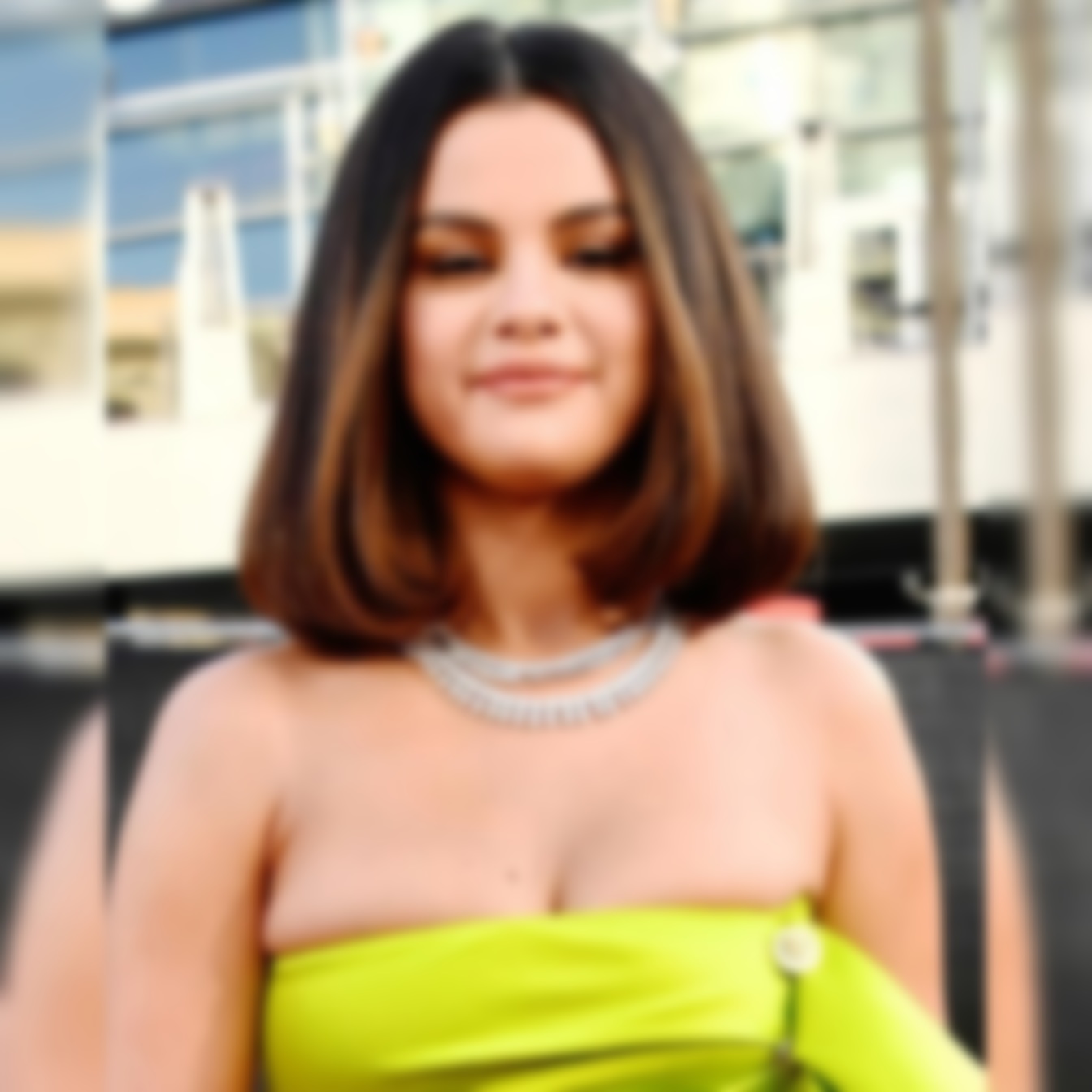 Верх наряда немного сполз вниз и передавил бюст знаменитости. Невооруженным взглядом было видно, что платье попросту мало.