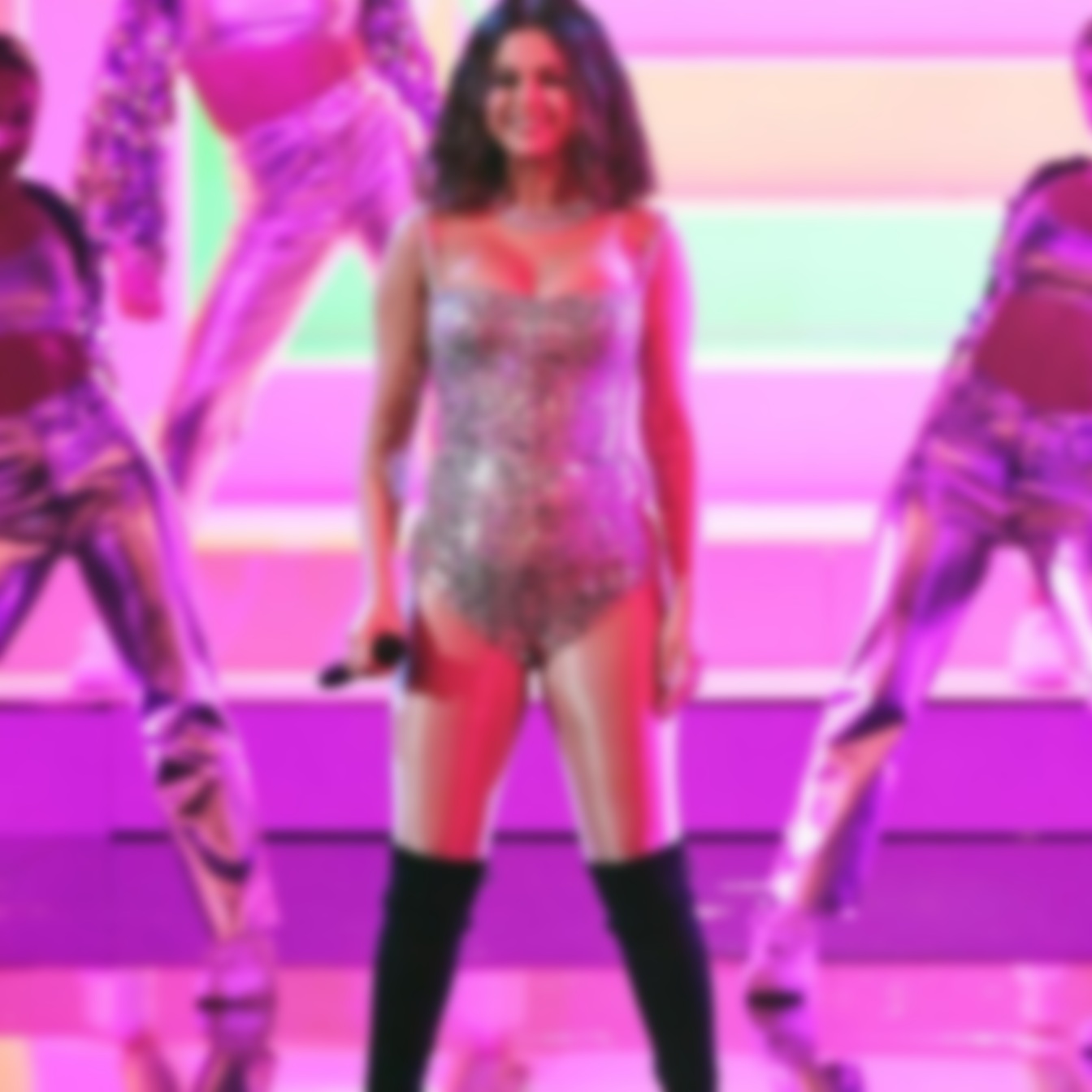 Как выяснилось позже, не стала певица заморачиваться не только насчет вечернего наряда. Во время выступления на сцене премии Гомес появилась в серебристом боди и также не удосужилась подогнать его по размеру.
