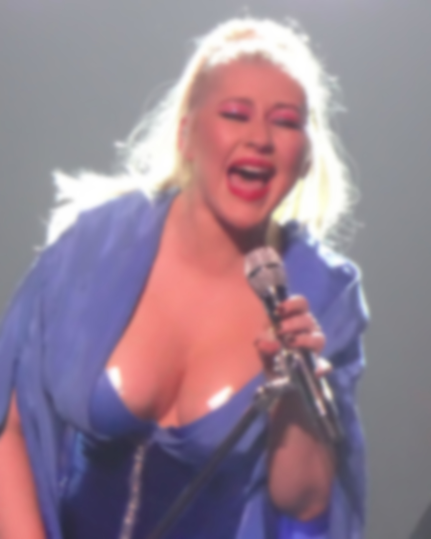 Зрители обратили внимание, что в моменты, когда звезда наклонялась, ее бюст буквально выпрыгивал из корсета. Поклонники даже успели снять этот момент и после рассмотреть, что причинные места, дабы не было конфуза, артистка заклеила скотчем.