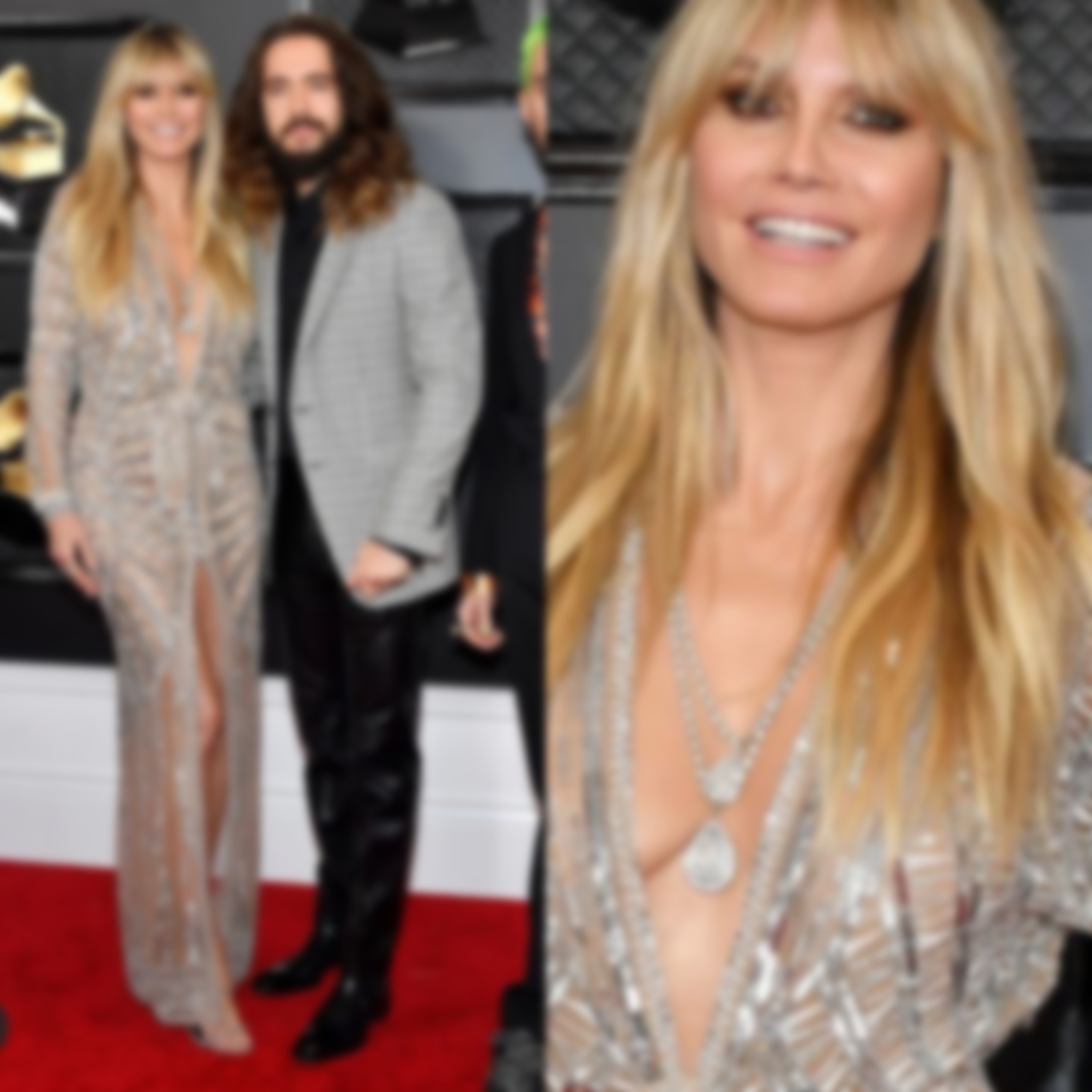 Именно такое впечатление произвела Хайди Клум, пришедшая на мероприятие со своим молодым мужем. Внимание зрителей было приковано не к музыканту, а к модели. Хайди выбрала в качестве вечернего наряда роскошное платье с декольте до талии и разрезом по ноге до бедер.