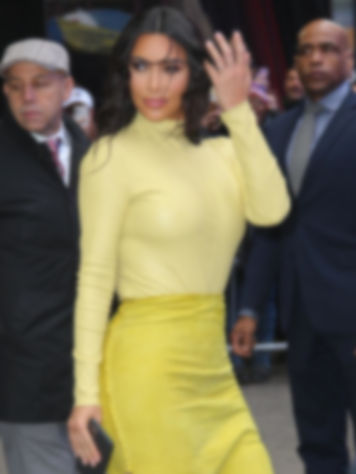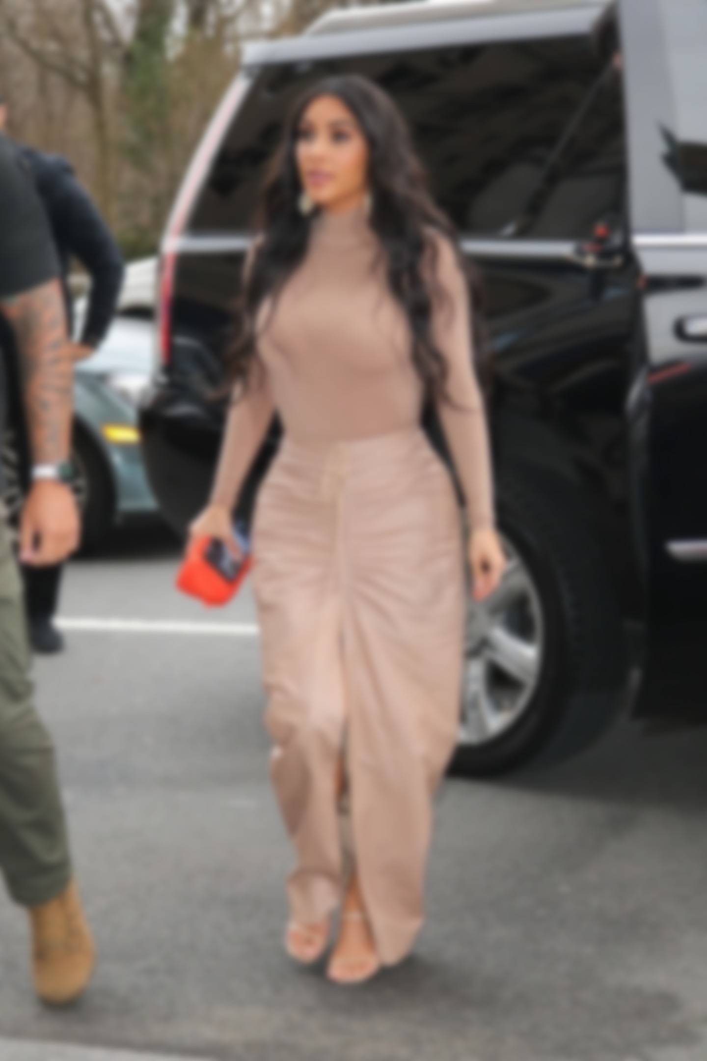 Также эта деталь гардероба визуально сделала бедра Кардашьян шире. Из-за того, что кулиску на юбке все время приходилось подтягивать наверх, собранные складки создавали ненужный объем. К тому же выбор ткани для такой юбки не самый лучший: кожа усилила эффект расширения пространства.