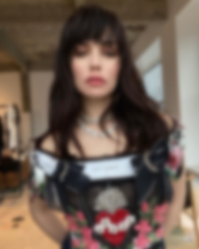 Артистка показалась перед ними в модном платье корсетного плана, сделанном из полупрозрачной сетки. Наряд от бренда Dolce & Gabbana выглядел аляповатым и полностью скрыл от поклонников фигуру звезды. Слишком громоздко смотрелись в образе сразу два ожерелья. Еще более неуместной показалась поклонникам новая прическа с растрепанными волосами и густой длинной челкой.