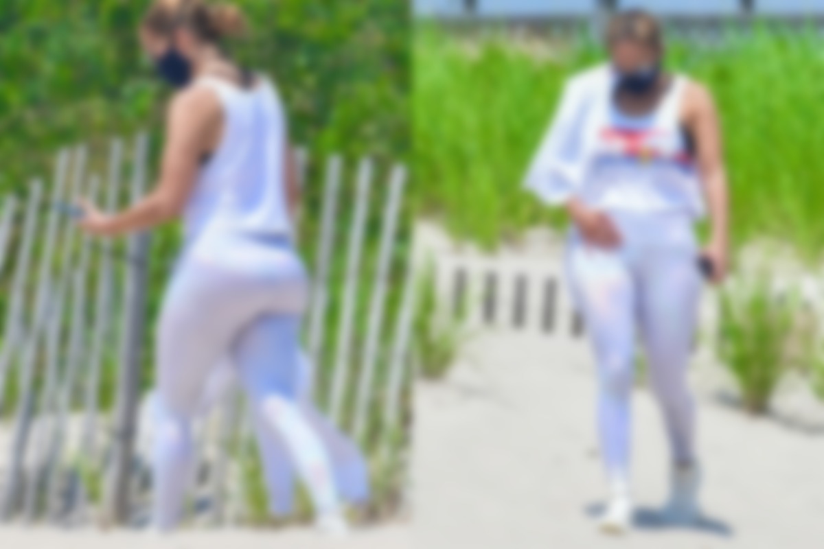 Обычно за спортивные луки Джей всегда удостаивается восторгов со стороны поклонников, однако в этот раз они удивились, когда увидели Лопес после тренировки. В этот раз звезда предпочла надеть белые леггинсы блестящей фактуры. Певица дополнила их укороченным топом черного цвета. Поверх него знаменитость надела короткую свободную майку.