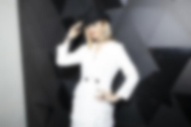 Звезда выбрала для выхода белый наряд, включающий платье с пышной юбкой, содержащей воланы, и элегантный пиджак, наброшенный поверх. Дополнила образ изысканная черная шляпка с вуалью.