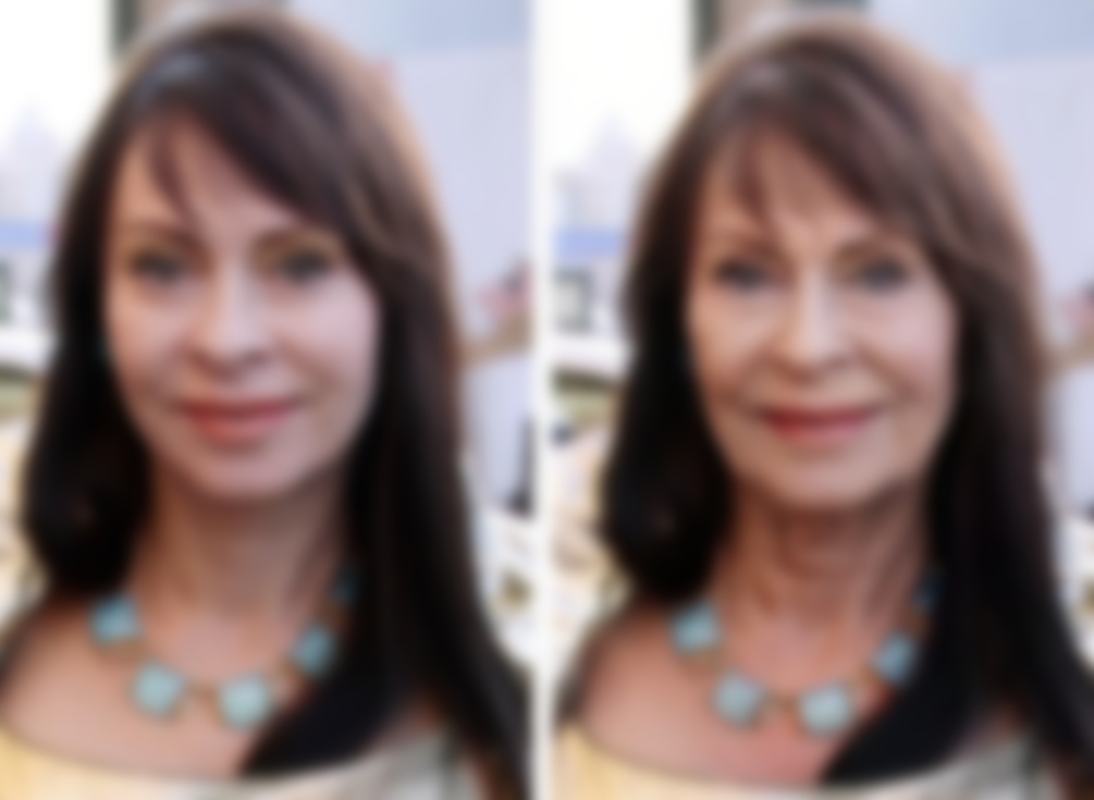 Если использовать редактор и состарить ее виртуально, мы получим симпатичную бабушку. Вряд ли в таком виде звезда могла бы играть в кино элегантных городских дам, но в роли типичных бабушек, пекущих пирожки, она смотрелась бы очень органично.