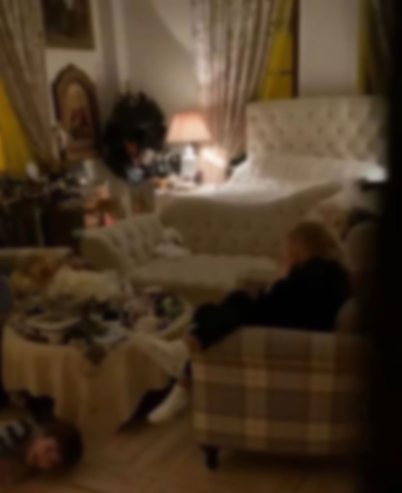 На днях Лиза и Гарри баловались, носясь с телефоном по замку и снимая все на своем пути. Так, сначала дети оказались в длинном коридоре, а потом попали в какое-то затемненное помещение. Там в одном из кресел уютно расположилась Алла. Она не ожидала, что к ней с таким шумом, без спроса, залетят сын и дочка. А когда увидела в их руках телефон, то закрыла лицо руками.