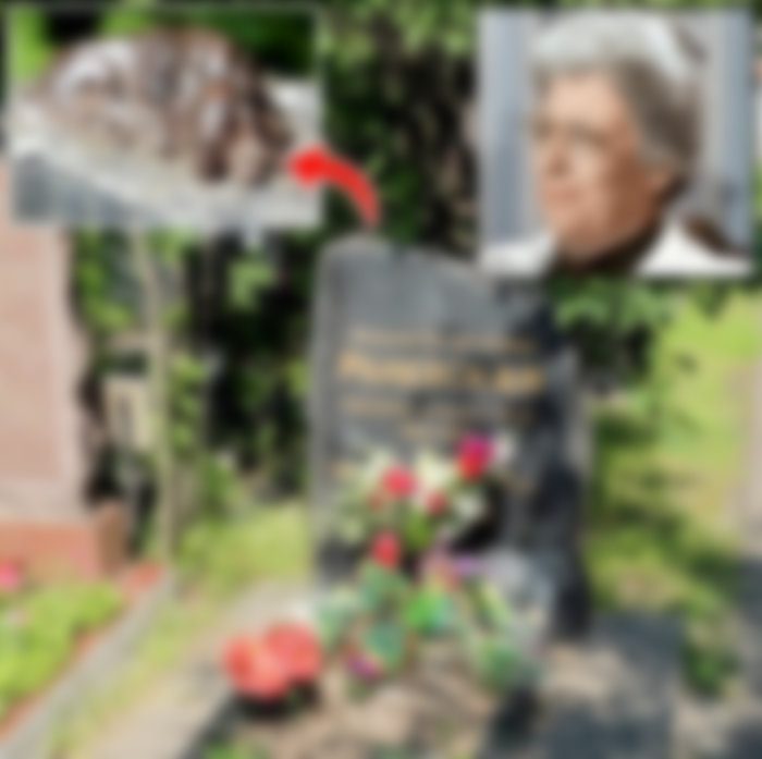 Интересным элементом памятника является еле заметная фигурка пса, того самого Мальчика, который скрашивал последние дни своей хозяйки. Он, кстати, шел вместе со всей похоронной процессией и также проводил Фаину Георгиевну в последний путь. После смерти любимой владелицы он прожил немного.