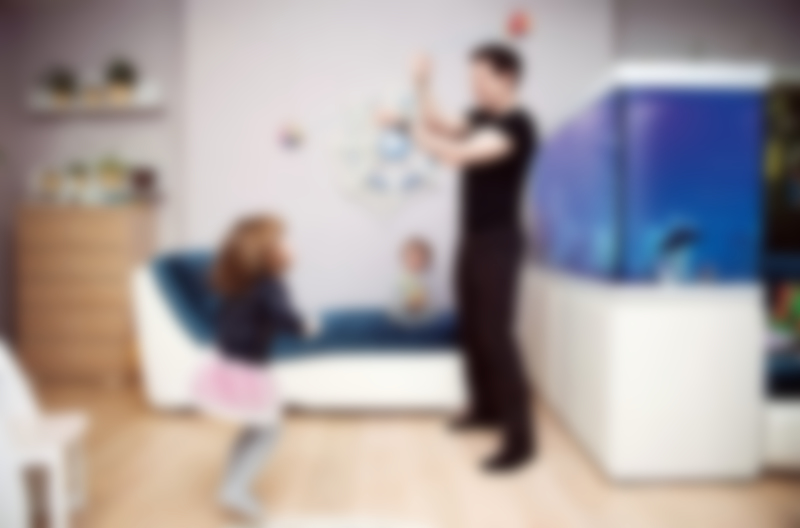 В оформлении дома также используется морская стилистика. Например, стены и потолок гостиной выкрашены в синий цвет, а в углу комнаты был поставлен небольшой домик в виде корабля, где дети пары так любят играть.
