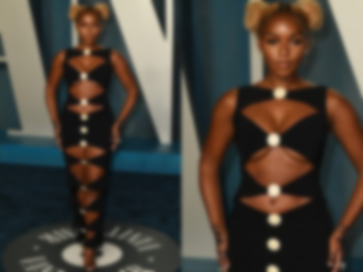 Например, Жанель Моне пришла в платье с разрезами впереди. Куски ткани еле держались на декоративных элементах, напоминающих пуговицы. Сложно сказать, какой глубины был вырез в области груди, когда все платье представляло собой одно сплошное декольте.