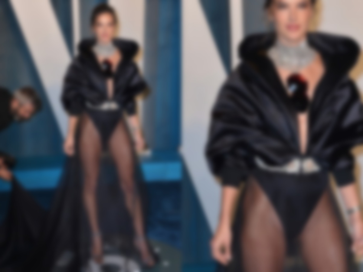 В целом, вырезов было очень много. Алессандра Амбросио пришла в своеобразном наряде. Сверху все было чинно и благородно, а снизу платье представляло собой боди с ничего не скрывающей юбкой-сеткой сверху. Гармонии в образе не было. Верх и низ спорили между собой.