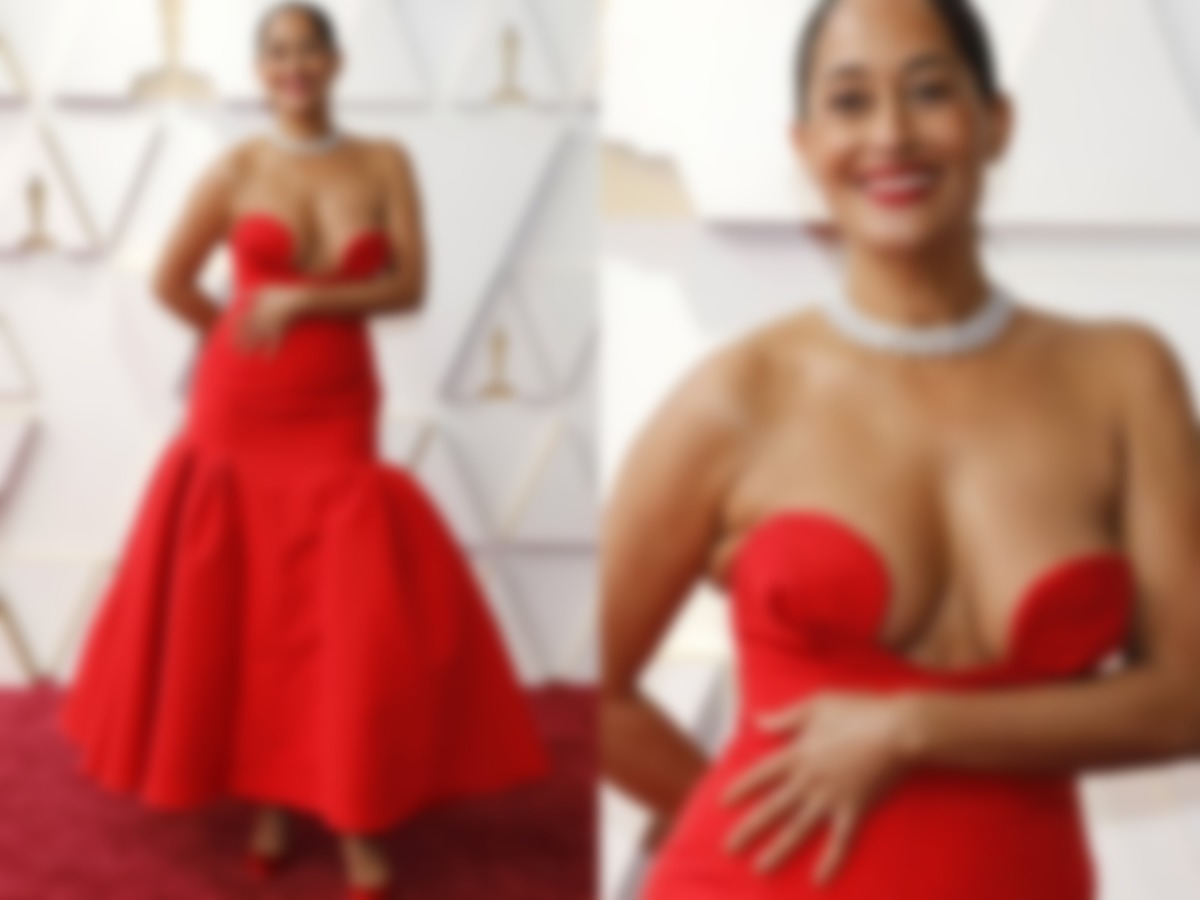 Самым ярким и странным оказалось платье Трейси Эллис Росс. Плотная ткань и идеально скроенный пышный низ выдавали претензию на элегантность, но слишком глубокое декольте испортило все. Две вставки, едва прикрывающие грудь, заставляли гостей и зрителей спорить – случится конфуз или нет?