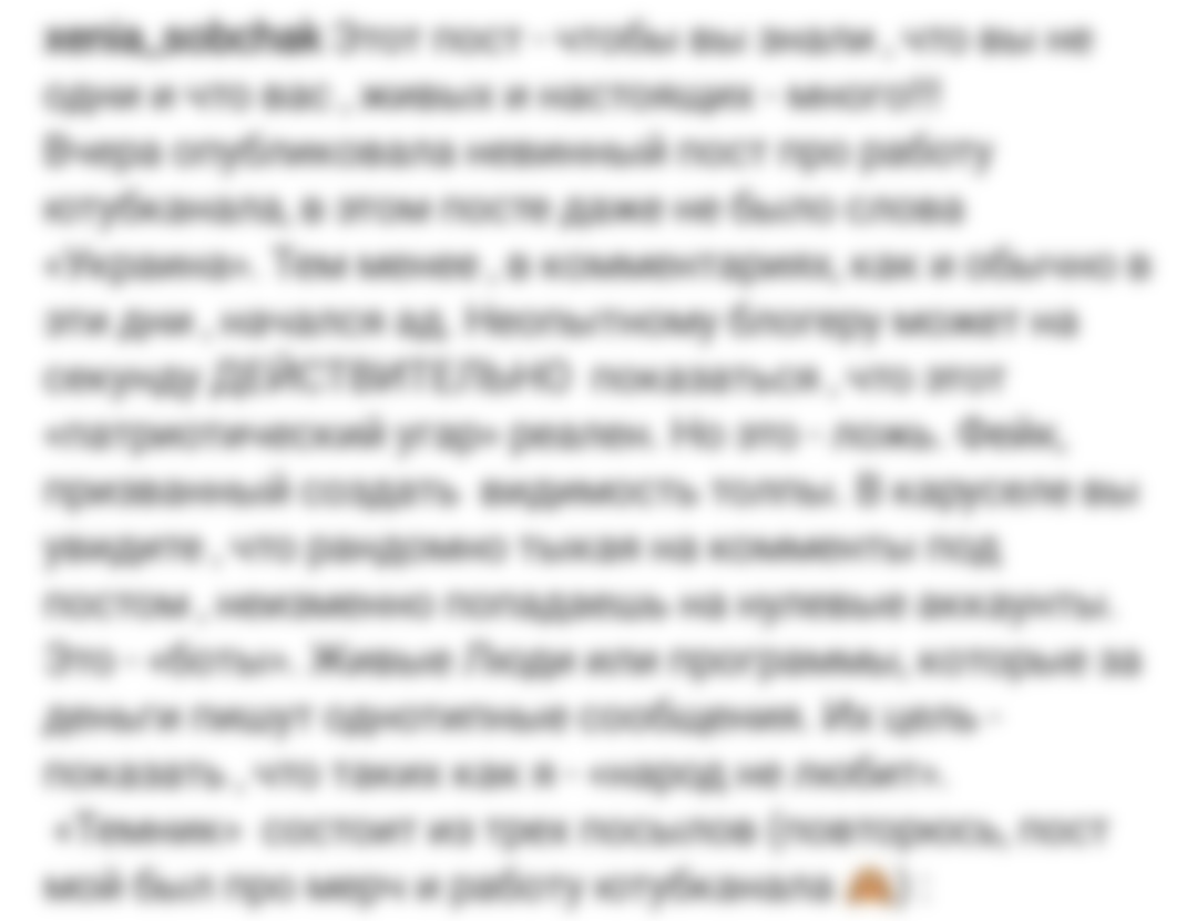 Здесь же под постом оказалось, что многие не согласны с позицией, которую Собчак транслирует у себя в Телеграм-канале и на YouTube. Комментаторов было очень много, все они высказывали свое мнение на тему происходящего в соседней стране.