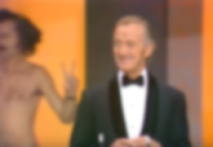 Дэвид Нивен не мог понять, что происходит. Ведущий сначала подумал, что зрители смеются над ним, но когда обернулся, увидел голого мужчину, который бегал по сцене. Зрители продолжали смеяться, а ведущий растерянно смотрел по сторонам, однако потом он собрался и продолжил речь.