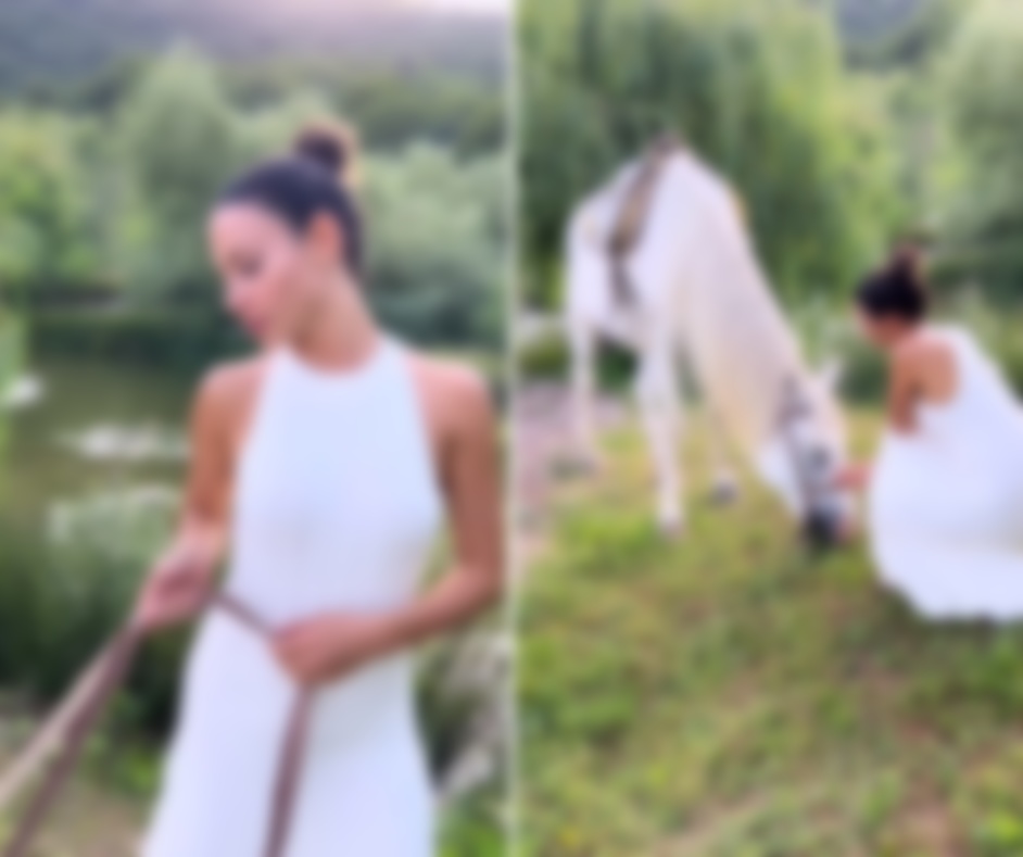 На личной страничке Зепюр появились свежие кадры: девушка, в светлом, длинном, облегающем платье держит белую лошадку за поводья. Животное ест траву, а Зепюр позирует. На кадрах поклонники разглядели едва округлившийся животик и решили, что актриса ждет пополнение.