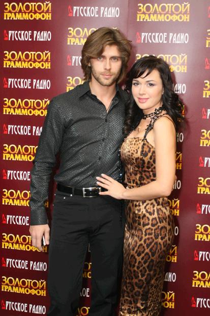 Церемония награждения «Золотой Граммофон 2008», Москва, Россия, 1 декабря 2008 года. На фото: Анастасия Заворотнюк, Петр Чернышев.