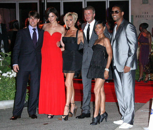Вечеринка четы Бекхэм Welcome To America, Лос-Анджелес, 22 июля 2007. На фото - Том Круз (Tom Cruise), Кэти Холмс (Katie Holmes), Виктория Бекхэм (Victoria Beckham), Дэвид Бекхэм (David Beckham), Джада Пинкетт Смит (Jada Pinkett Smith) и Уилл Смит (Will Smith). Александр Винокуров, астролог: Виктория — Овен с влиянием Воды (чувственность) и Воздуха (любознательность и общительность). Чего ей точно не хватает, так это Земли — практичности, хозяйственности, деловой хватки. Аспект Солнца к Черной Луне говорит о ярко выраженной сексапильности и откровенности вообще. Перчинка! Дэвид в этой паре явно играет роль хозяина в доме: он как раз земной Телец, обстоятельный, умеющий всюду устроиться со вкусом и комфортом. В его гороскопе, как и у супруги, тоже сильны стихии Воздуха и Воды. Их отношения держатся на общих интересах, умении легко договориться, и на нежных чувствах, да! Есть и шероховатости. С точки зрения Дэвида, Виктория — эдакая коза, которая уже слегка достала своими взбрыками — и что бы ей не жить спокойно? В свою очередь, Дэвид в глазах Виктории — толстокожий пофигист. Но всё это мелкие расхождения на уровне полушутливых стычек, а в основном эта пара вполне гармонична. Забавно, что главная богемная чета Англии астрологически напоминает «синастрию» Аллы и Филиппа (тоже Овен и Телец). Если сравнить гороскопы Дэвида и Виктории, особых причин для развода не видно. Но если Бекхэмы когда-нибудь вдруг да разойдутся, то наверняка по инициативе резковатой Пош. Кстати, у Виктории в ближайшие несколько лет произойдет «выход из тени в свет» в каком-то новом качестве. А у Дэвида, напротив, годы наибольшей славы сменяются достаточно «темным» периодом. Делайте выводы. Александр Винокуров, астролог, http://zodii.ru