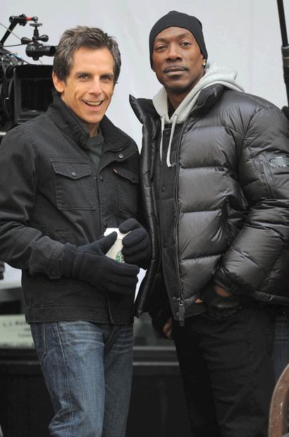 Съёмки фильма Tower Heist, Нью-Йорк, 20 января 2011. На фото - актёры Бен Стиллер (Ben Stiller) и Эдди Мерфи (Eddie Murphy).