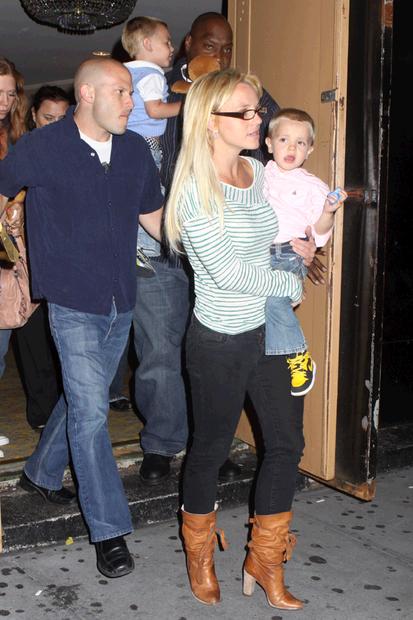 Бритни Спирс (Britney Spears) с детьми в Нью-Йорке, 27 августа 2009 года. На фото — с сыном Шоном Престоном на руках.
