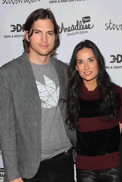 Актер Эштон Катчер и его жена актриса Деми Мур на вечеринке в честь нового проекта социальной рекламы Real Men Don't Buy Girls, Нью-Йорк, 14 апреля 2011.