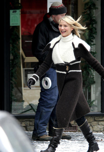 Съемки фильма "The Holiday", Суррей, Великобритания, 21 февраля 2006. На фото: Камерон Диас (Cameron Diaz). Романтическая комедия "Отпуск" (Holiday) с участием британских актеров Джуда Лоу и Кейт Уинслет, а также известной голливудской актрисы Камерон Диас, снимается в графстве Суррей и в Лондоне. Картина повествует о перипетиях взаимоотношений американской женщины с ее возлюбленным, а затем встречающей британскую подругу с подобной же проблемой.